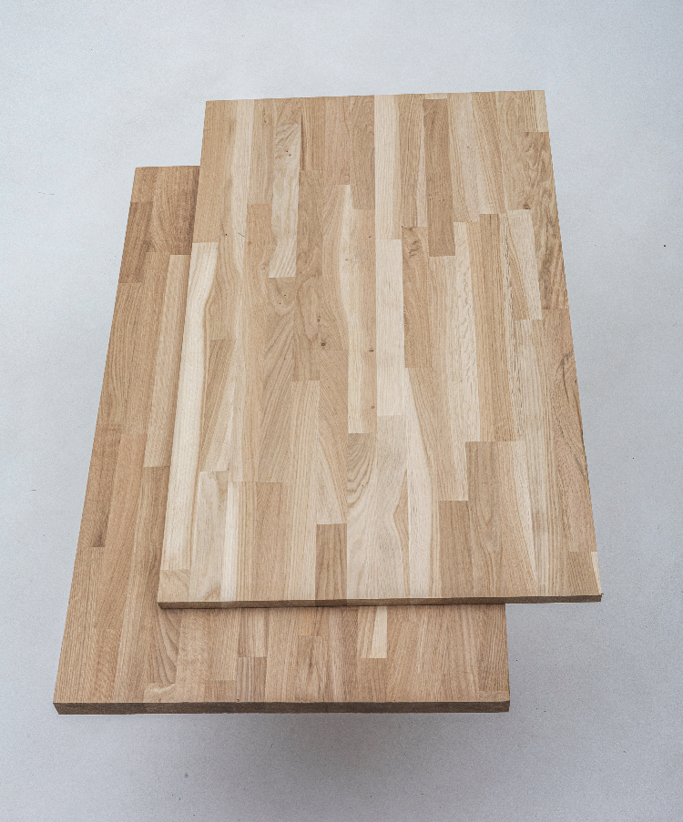 Сращенная склейка: Данный вариант предполагает, что те же ламели из какой-то одной древесной породы (например, сосны, дуба, лиственницы или ясеня) берутся небольшого размера. Это могут брусочки 40-50 мм. Обычно при создании щитов из сращенных ламелей используются остатки древесины, ничуть не уступающие по своим прочностным характеристикам (но не подходящие для цельноламельной склейки). Однако сохранить фактуру целостной и однородной в данном случае не получится.
