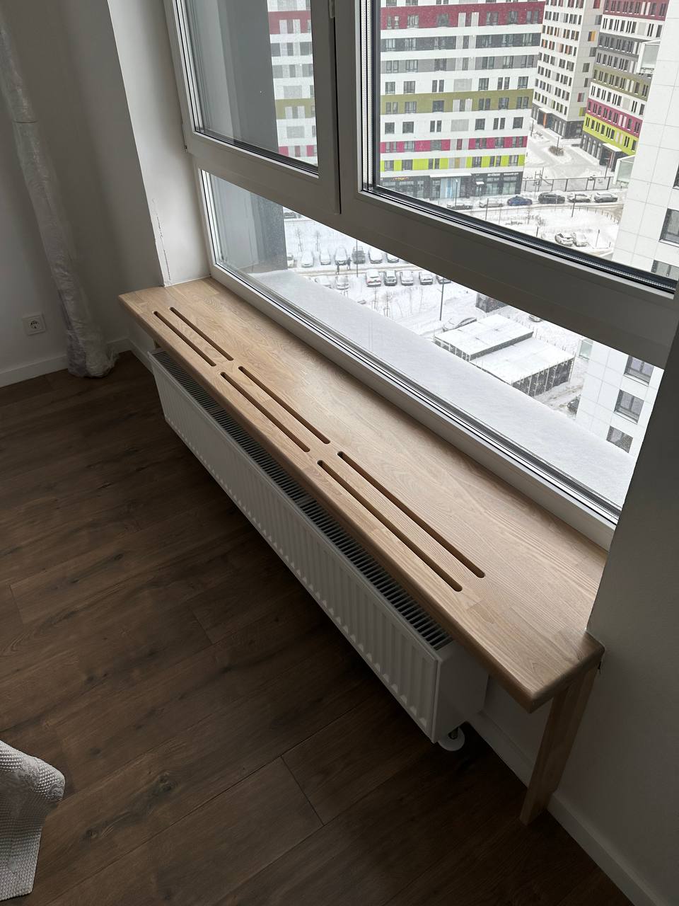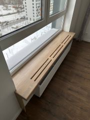 Сидячий подоконник, материал ясень,  покрытие saicos 3413