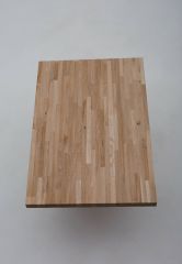 Сращенная склейка: Данный вариант предполагает, что те же ламели из какой-то одной древесной породы (например, сосны, дуба, лиственницы или ясеня) берутся небольшого размера. Это могут брусочки 40-50 мм. Обычно при создании щитов из сращенных ламелей используются остатки древесины, ничуть не уступающие по своим прочностным характеристикам (но не подходящие для цельноламельной склейки). Однако сохранить фактуру целостной и однородной в данном случае не получится.